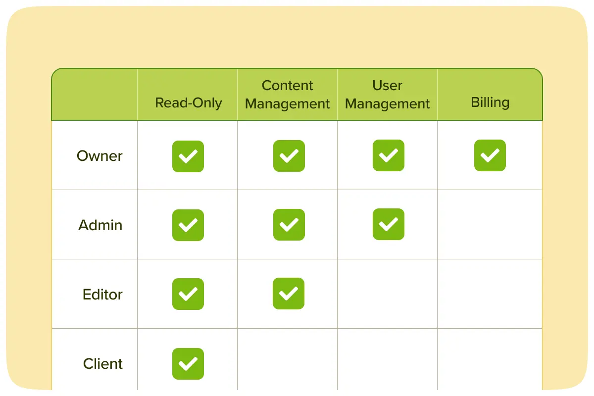 - Control who sees what - give team members and clients access to only their relevant workspaces
