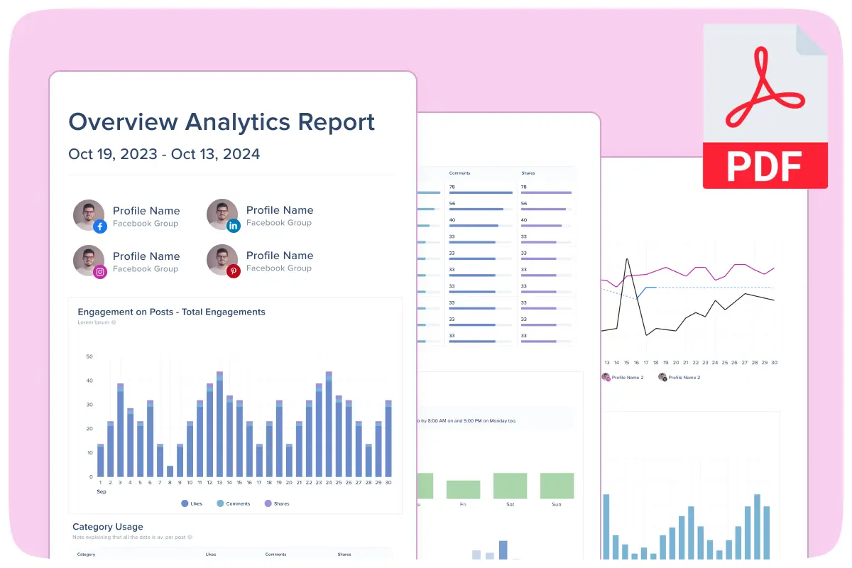 Track what's working with detailed analytics for every post and profile. See engagement metrics, click-through rates, and audience growth all in one place, plus discover your optimal posting times and which content categories drive the best results, so you can focus your efforts where they matter most.