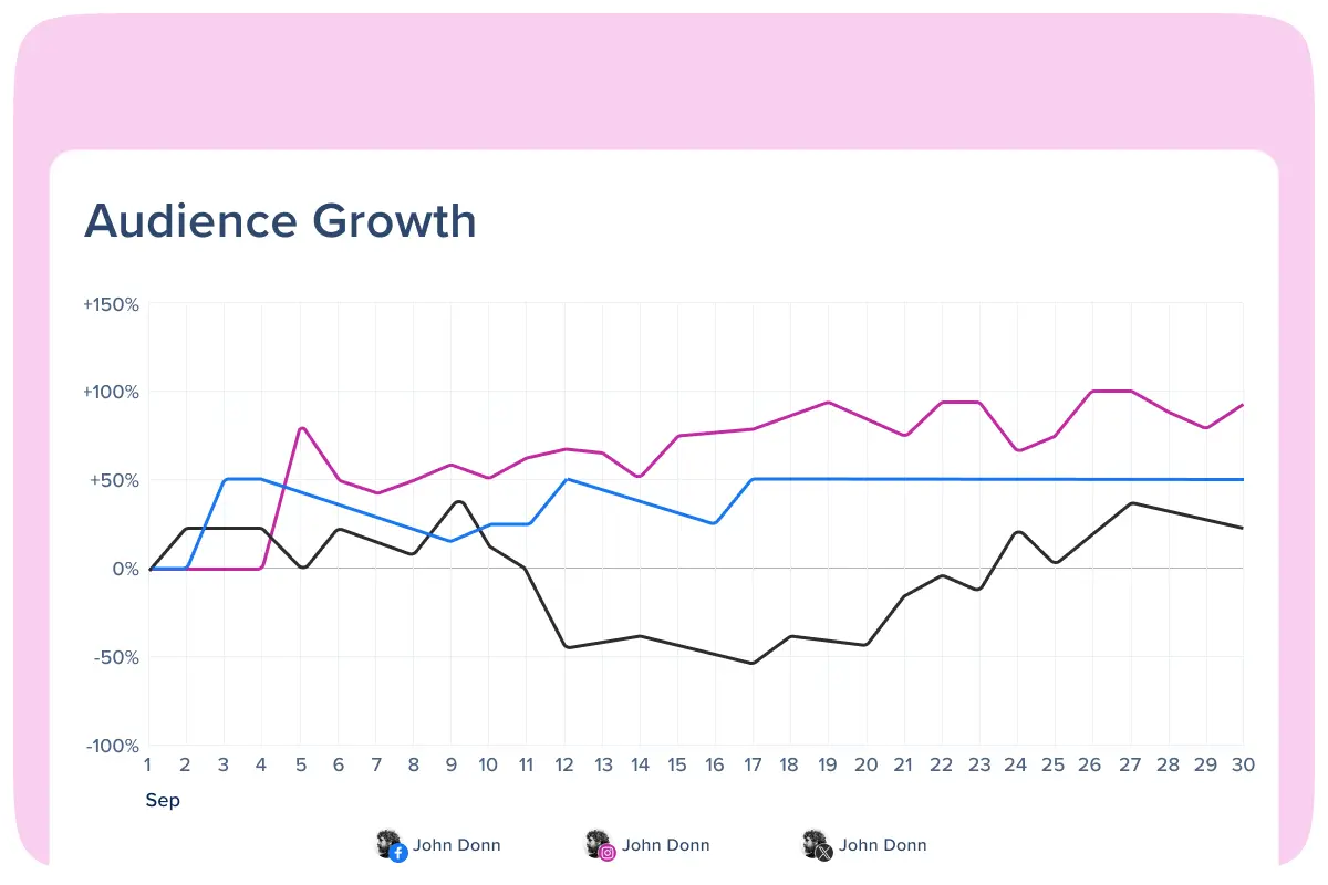 Monitor your follower growth daily across every connected profile and see which content drives the biggest audience spikes. Compare all your social platforms on one normalized chart to identify which strategies work best, regardless of starting follower counts.