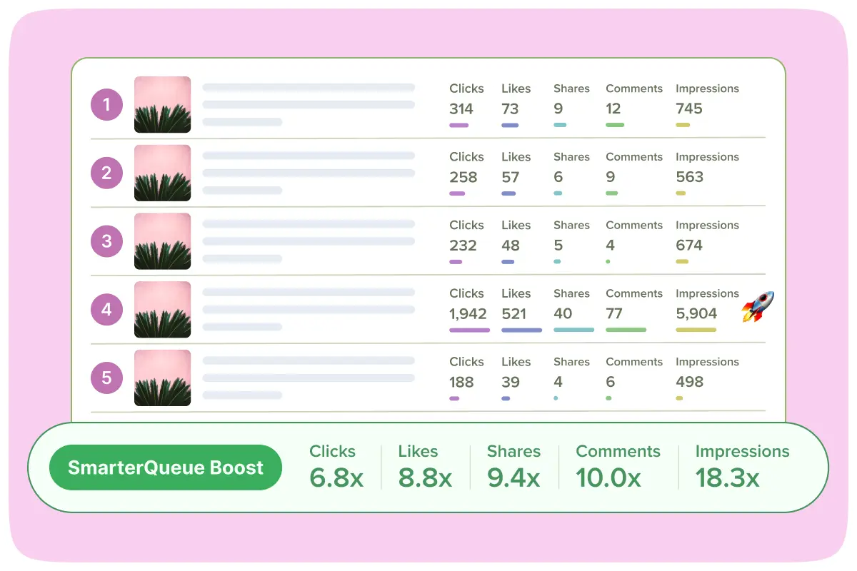 • See your "SmarterQueue Boost" - the multiplier showing how much more engagement you got from recycling
